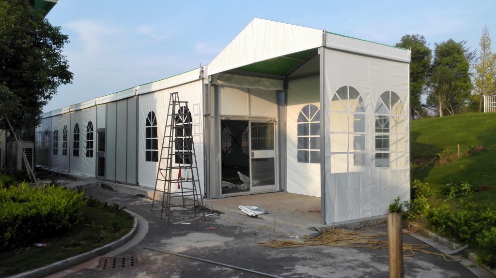 篷房(譯Fabric Building),是由輕質(zhì)鋁合金或鋼材、蓬布等搭建成的一種新戶外臨時(shí)型或長(zhǎng)期搭建型建筑,具有外形多樣、安全可靠、重復(fù)使用、拆裝靈活、儲(chǔ)運(yùn)輕便等特點(diǎn)。