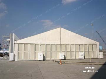 臨時倉儲篷房除了易于裝卸和搬遷外,結構還非常的結實。可配以安全門鎖,以保證里面商品的安全。優質材料和良好的設計讓商品即使在苛刻和多變的天氣條件下也不會影響質量和使用。