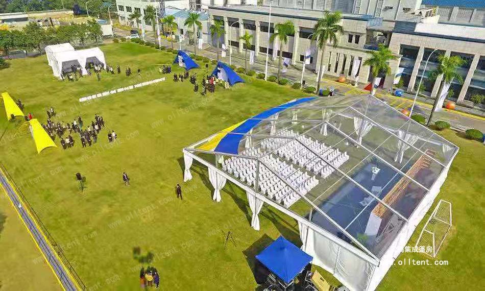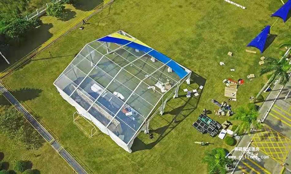 因篷房對搭建場所要求不高,可以搭建在草坪上、水泥地上、水面上等等,活動舉辦者可以更靈活地選擇自己想要搭建的場所。為了更為人性化,透明篷房還有各種形狀和靈活的結構組合,而且搭建簡易迅速、施工周期短,非常適合用于戶外短期或者長期的活動。