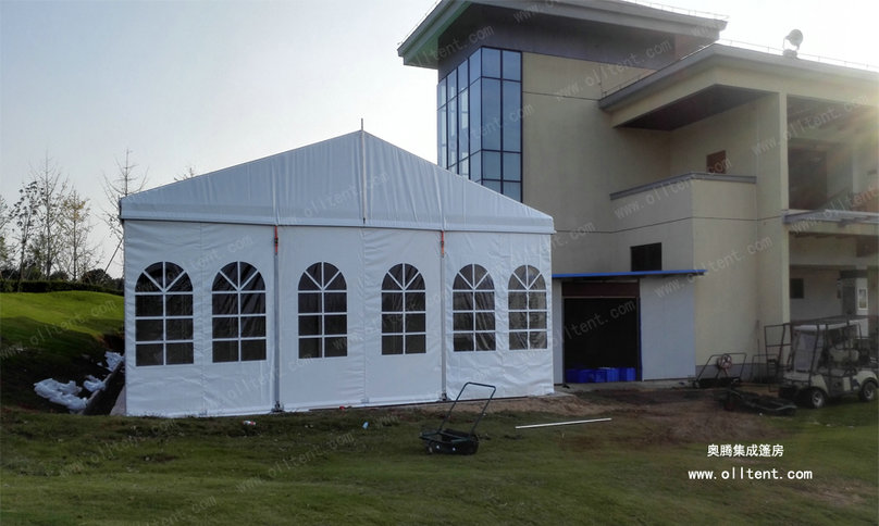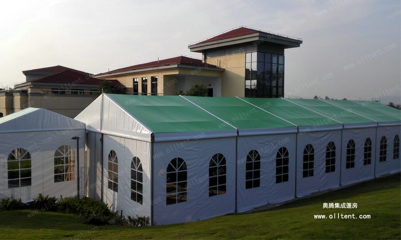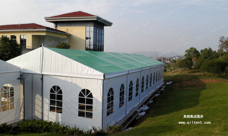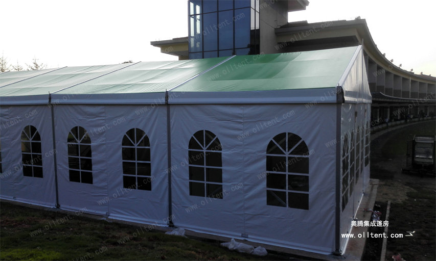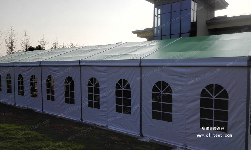 JX系列小型篷房常規(guī)寬度是6米、9米、12米、15米共四種常用尺寸。篷檐高度(邊高)是3米。篷房的結(jié)構(gòu)采用單元組合式設計,長度可按3米間距增加或減少。支架的主要構(gòu)件(立柱和斜梁)用四槽的122×68×3㎜四槽的高強度氧化鋁合金管材制造,篷布采用阻燃的雙面PVC刀刮布,符合歐洲DIN4102B1M2標準。克重650750850/平方米,有遮光和半透光兩種篷布選擇,篷房同樣可以配套ABS墻體、三明治墻體、彩鋼瓦墻體、玻璃幕墻、排水槽等豐富的配置,滿足各種功能需要。