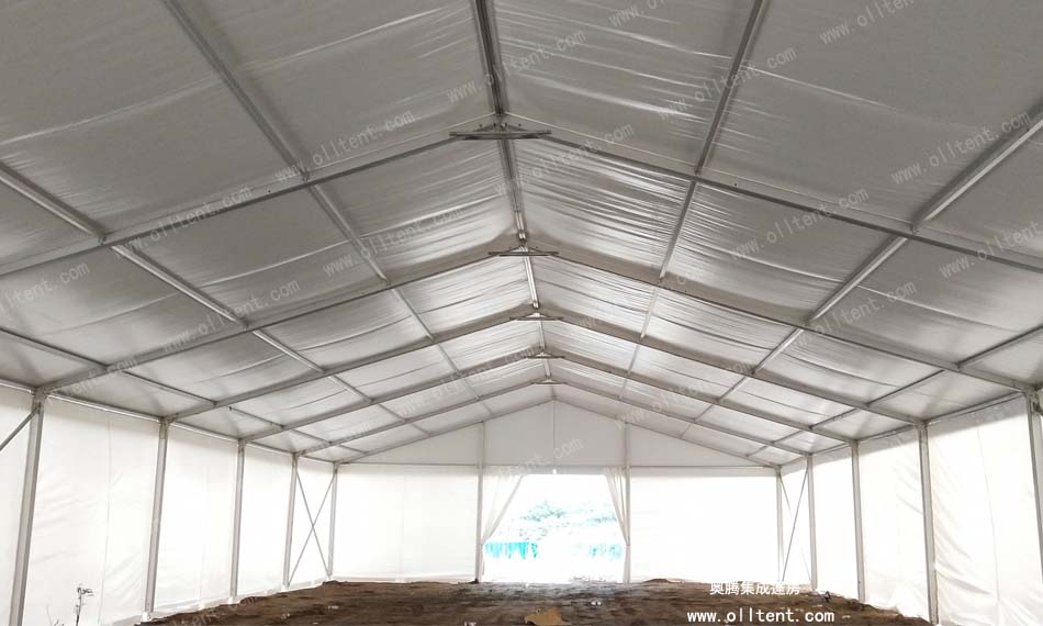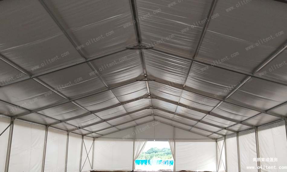 倉(cāng)儲(chǔ)篷房還有多種可供選購(gòu)的配置,使篷房功能更加強(qiáng)大。例如:ABS墻體、三明治墻體、彩鋼瓦墻體、玻璃幕墻、透明頂、頂幔布幔內(nèi)飾、排風(fēng)扇、卷簾門(mén)、玻璃門(mén)、承重盤(pán)承重框、地板系統(tǒng)、排水槽等
